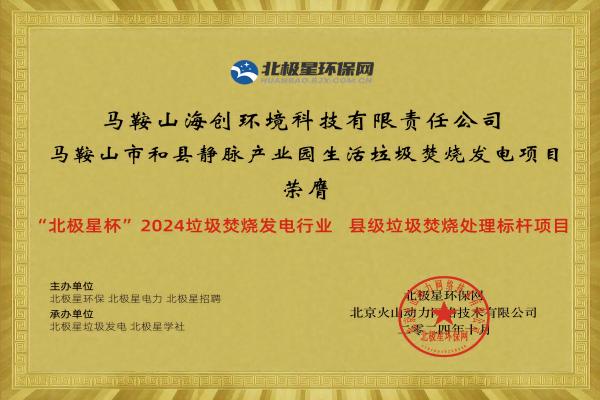 馬鞍山海創(chuàng)榮膺“北極星杯”2024垃圾焚燒發(fā)電行業(yè) 縣級(jí)垃圾焚燒處理標(biāo)桿項(xiàng)目