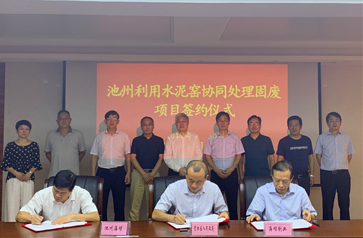 2019年7月30日,海螺創(chuàng)業(yè)與池州市貴池區(qū)人民政府成功簽署《池州利用水泥窯協(xié)同處理固廢項目合作協(xié)議》,項目規(guī)模為年處理固廢能力10萬噸。