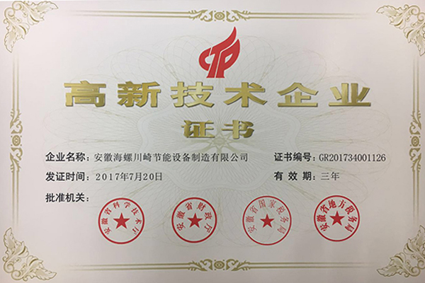 海川節(jié)能榮獲高新技術(shù)企業(yè)認定證書