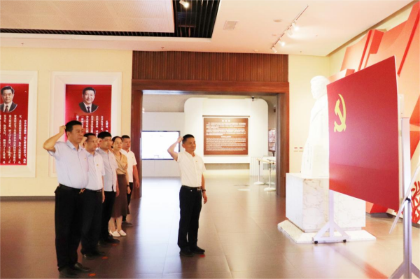參觀最后,全體黨員滿懷崇敬之情面對鮮紅的黨旗莊嚴(yán)宣誓,重溫入黨誓詞,表達(dá)了對黨忠誠的堅(jiān)定信念。