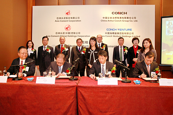 2014年1月7日上午,中國安徽海螺集團(tuán)公司、中國海螺創(chuàng)業(yè)控股有限公司分別與亞洲水泥股份有限公司、亞洲水泥(中國)控股公司在香港萬豪酒店簽署戰(zhàn)略合作協(xié)議。未來各方將加強(qiáng)在節(jié)能環(huán)保、國際化發(fā)展、新型建材及水泥生產(chǎn)技術(shù)、運(yùn)營管理、物流運(yùn)輸、房地產(chǎn)開發(fā)等領(lǐng)域的廣泛合作,共創(chuàng)互贏局面。