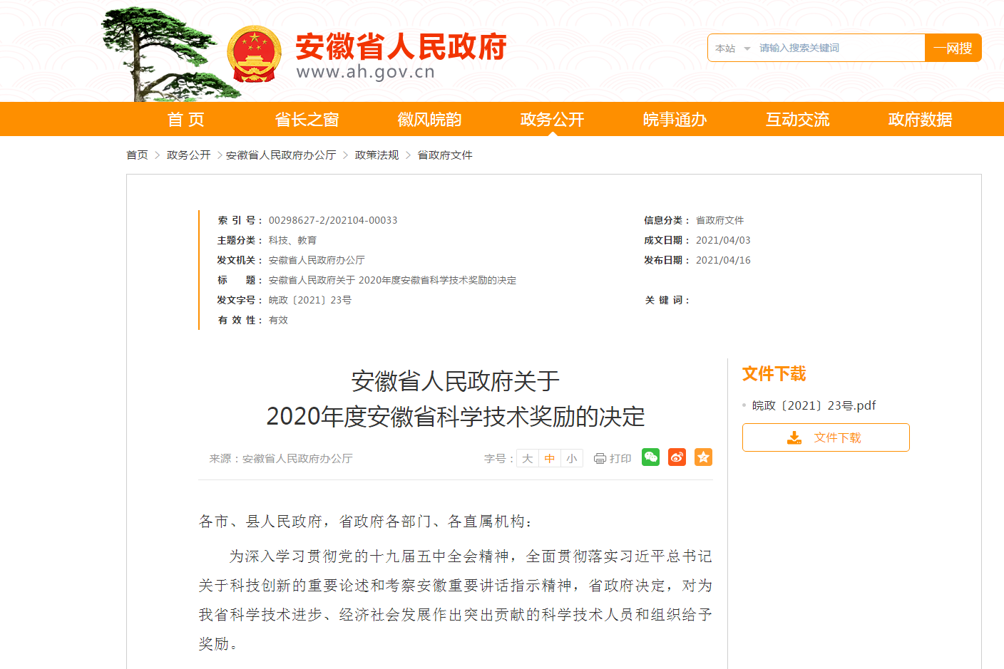 近日,安徽省人民政府發(fā)布了《安徽省人民政府關(guān)于2020年度安徽省科學(xué)技術(shù)獎的決定》(皖政【2021】23號)文件,對2020年度推動安徽省科學(xué)技術(shù)事業(yè)進步和經(jīng)濟社會發(fā)展做出突出貢獻的科技人員和組織給予獎勵。海螺創(chuàng)業(yè)憑借《水泥窯協(xié)同資源化處理城市廢棄物系統(tǒng)集成關(guān)鍵技術(shù)開發(fā)與應(yīng)用》重要科研成果榮獲安徽省科學(xué)技術(shù)獎三等獎,這是海螺創(chuàng)業(yè)首次獲得該獎項。