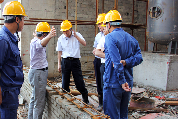 ? ? 10月1日上午,在金寨公司現(xiàn)場(chǎng)管理人員陪同下,紀(jì)總一行從進(jìn)廠道路開(kāi)始,對(duì)整個(gè)建設(shè)工程進(jìn)行了全面檢查,并對(duì)存在的問(wèn)題現(xiàn)場(chǎng)進(jìn)行了研討,明確了意見(jiàn)。