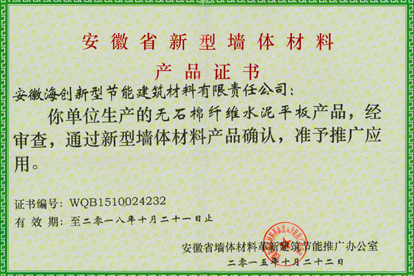 新型墻體材料產(chǎn)品認(rèn)定證書