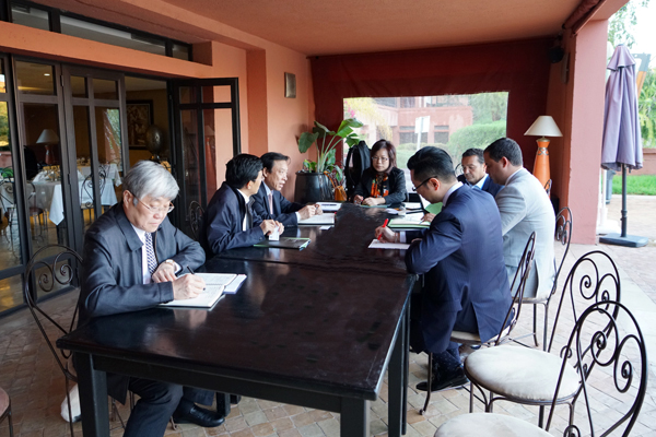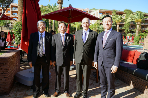 ??? 11月7日下午,經(jīng)過20多小時長途飛行抵達馬拉喀什,紀勤應(yīng)總經(jīng)理一行受到摩中商會會長金曼德先生、摩洛哥外貿(mào)銀行國際部主管Abdou先生的熱烈歡迎,雙方在下榻的酒店進行了會晤。