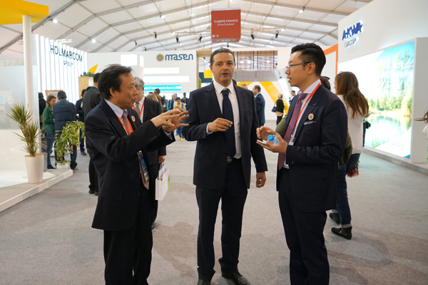 ??? 11月9日上午,摩洛哥丹吉爾大區(qū)行政長官Omari先生在聯(lián)合國氣候大會展館現(xiàn)場會見了紀勤應(yīng)總經(jīng)理一行。