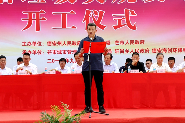 芒市副市長孟玉相坐代表芒市人民政府致辭。她首先向公司開工儀式的舉行致以熱烈的祝賀,表示市鎮(zhèn)府、各相關局委及鄉(xiāng)鎮(zhèn)將全力支持好、配合好項目建設,努力為項目建設提供優(yōu)質(zhì)服務、創(chuàng)造寬松環(huán)境,全程、全時、全力關注支持公司建設,確保項目早建成、早投產(chǎn)、早為芒市人居環(huán)境提升做貢獻。