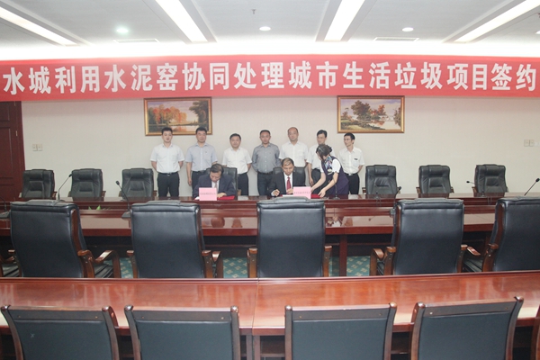 ? ? 2014年9月4日下午,水城經(jīng)濟(jì)開(kāi)發(fā)區(qū)、海螺創(chuàng)業(yè)在安徽省蕪湖海螺國(guó)際會(huì)議正式簽署了《關(guān)于貴州水城利用水泥窯協(xié)同處理城市生活垃圾項(xiàng)目合作協(xié)議》,水城經(jīng)濟(jì)開(kāi)發(fā)區(qū)副主任陸秀云、經(jīng)發(fā)局主任李徽;海螺創(chuàng)業(yè)總經(jīng)理紀(jì)勤應(yīng)、副總經(jīng)理李大明;水城海螺副總經(jīng)理潮龍喜等參加了簽約儀式。